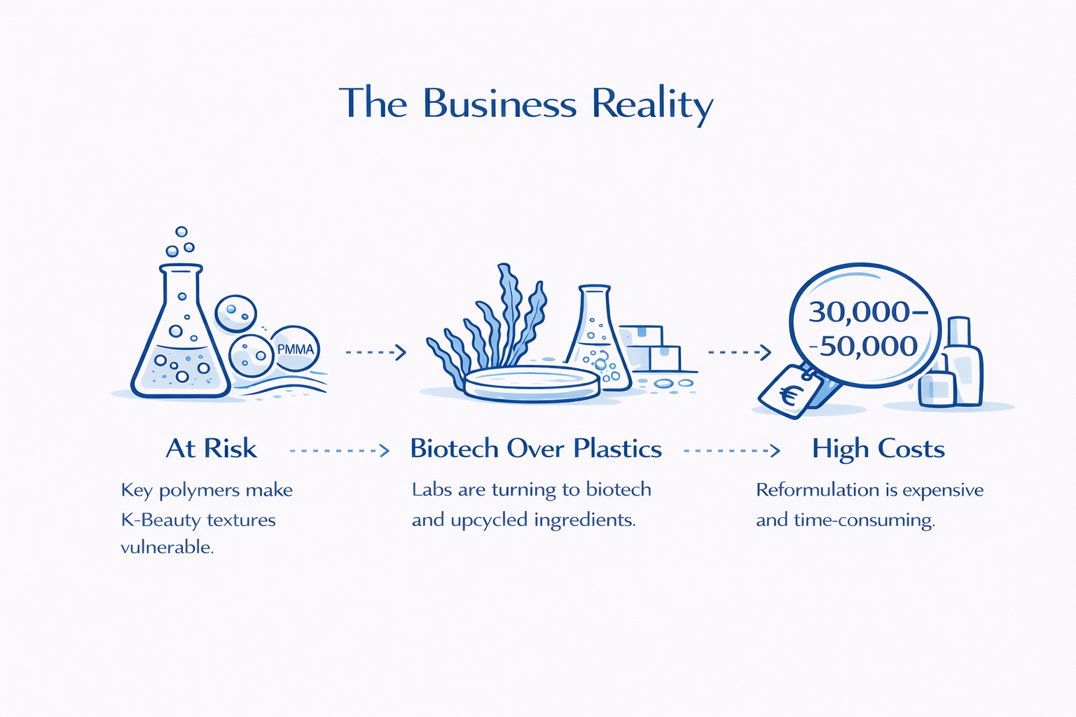 K-Beauty의 글로벌 지배력은 원료에만 국한되지 않았습니다.. “글래스 스킨” 글로우, 무중력 SPF, 인스턴트 블러 프라이머는 모두 정교한 텍스처에 의존합니다.하지만 이러한 제품을 마치 제2의 피부처럼 느끼게 하는 합성 폴리머는 이제 규제 대상입니다.